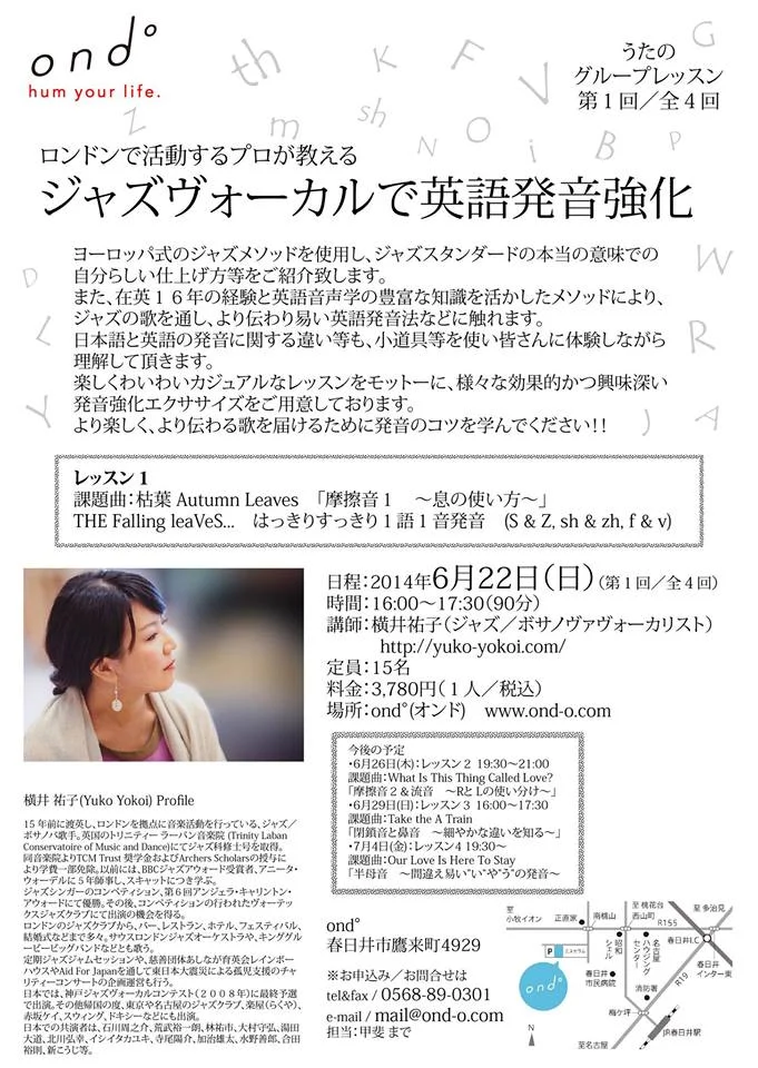 東京でのジャズヴォーカルワークショップを開催します!ご詳細はこちらへ。
